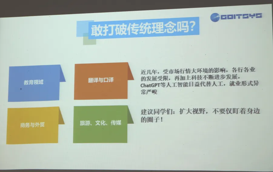 戈尔特集团是以海外金融证券服务外包为主营业务的一家公司,对于招聘人员的英语水平有较高要求,招聘岗位与我院学生适配度极高。同学们就工作时间要求、应聘能力要求以及该公司薪资福利等方面的问题与戈尔特集团CEO展开了互动交流。