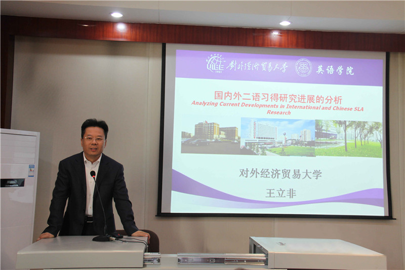 (撰稿:李坤)10月26日下午,由学院举办的“外语名家讲坛”第五讲在舜耕校区干训楼5楼A教室举行,对外经济贸易大学英语学院院长、博士生导师、王立非教授作了题为“国内外二语习得研究的进展”的学术报告。学术报告会由副院长史汝波教授主持,学院教师、全体研究生、高年级本科生参加了学术报告会。
