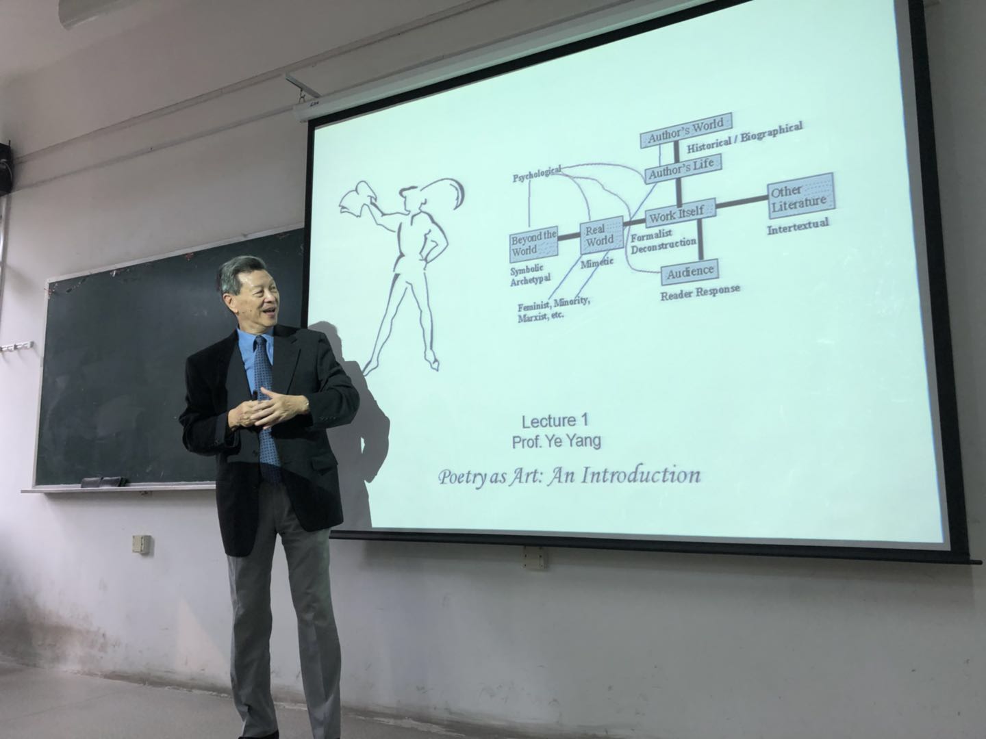叶教授此次来访前后持续两周,共开设了六场讲座。各场讲座后,他都与师生亲切互动,耐心细致地回答提问,建议大家广泛涉猎古今中外文史哲各类书籍,培养更宽阔的视野,努力创新,厚积薄发。叶教授讲座对中西诗歌传统深刻的见解,对作品的精致剖析和巧妙的对比视角,授课时翔实的图文资料、生动的演说吟诵、多种语言的自如切换,渊博的学识、扎实的功底、严谨的治学,均给我校师生留下了深刻的印象,可谓领略大师风采,终身得益。特别是他在每次授课过程中,分别用中文、英文、法文吟唱数首诗歌,音韵优美,意境别致,风格相异,为广大师生带来了新鲜而又极致的听觉享受。叶教授的精彩系列讲座,将有效地促进我校外国语言文学学科专业发展,提高教师的教学科研水平和人才培养质量。