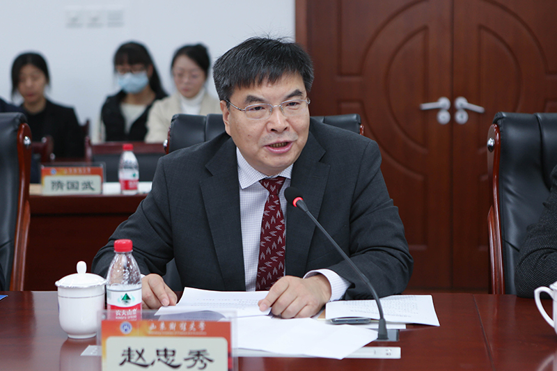 我校校长、教育部高等学校经济与贸易类专业教学指导委员会主任委员赵忠秀教授以“鲁日韩经贸合作与东亚区域价值链构建”为题,从历年中日韩进出口规模、双边贸易占全球市场的份额以及中日韩进出口产品结构入手,深入浅出地探讨了动态掌握中日韩双向贸易数据库的重要性,提出研究院的建设重点之一就是要为政府和企业提供数据服务。同时,他转达了国家卫健委疾控局巡视员贺青华对研究院成立的良好祝愿。