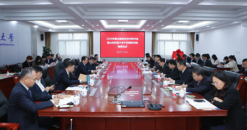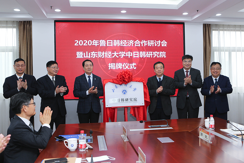 乘RCEP签署之东风,11月18日,2020年鲁日韩经济合作研讨会暨山东财经大学中日韩研究院成立揭牌仪式在我校燕山校区隆重举行,有关方面领导、专家学者、师生代表60余人见证揭牌仪式。开幕式由校长赵忠秀主持。