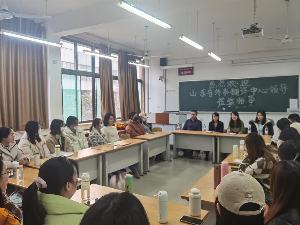 为进一步加强政校学研合作,开阔翻译硕士视野,提升专业素质及实践能力,12月9日,我院特邀山东省外事翻译中心领导和高级译员,举办“译路相随”翻译交流座谈会。