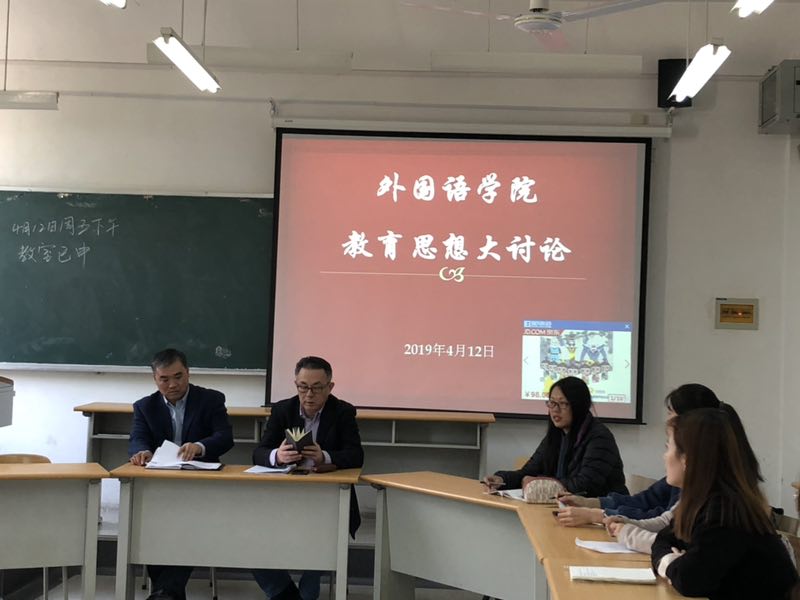 4月12日下午,外国语学院召开教育思想大讨论师生座谈会,贯彻落实全国高等学校本科教育工作会议精神,学院党委书记甘建青、院长李毅、院党委副书记陈海、院专职组织员齐文茜和全院各班代表参加了此次座谈会。