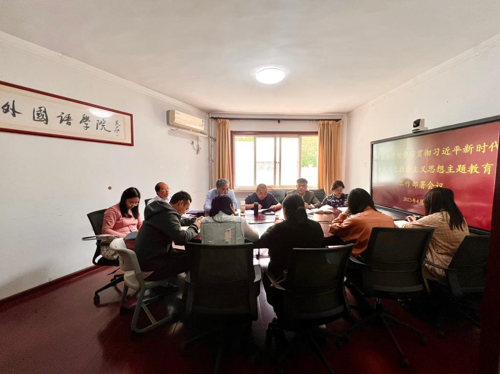 4月20日上午,外国语学院党委组织召开了学习贯彻习近平新时代中国特色社会主义思想主题教育工作部署会议暨学院党委理论学习中心组扩大会议,学院班子成员、党委委员、各党支部书记和科级干部参加了此次会议。院党委书记姜竹青主持会议。