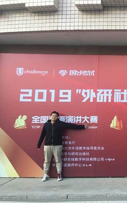 在课外实践方面,于2019年10月参与了由外国语教学与研究出版社主办、教育部高等学校大学外语教学知道委员会与教育部高等学校英语专业指导分委员会合办的全国英语演讲大赛。在经过短短两周的准备时间后,最终获得了省赛三等奖的名次。