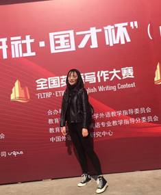 在2019“外研社•国才杯”全国英语写作大赛中,她凭借自己多年来的写作积累,在外国语学院王愿菲老师的帮助下,取得了“2019‘外研社•国才杯’全国英语写作大赛山东省三等奖”的好成绩。