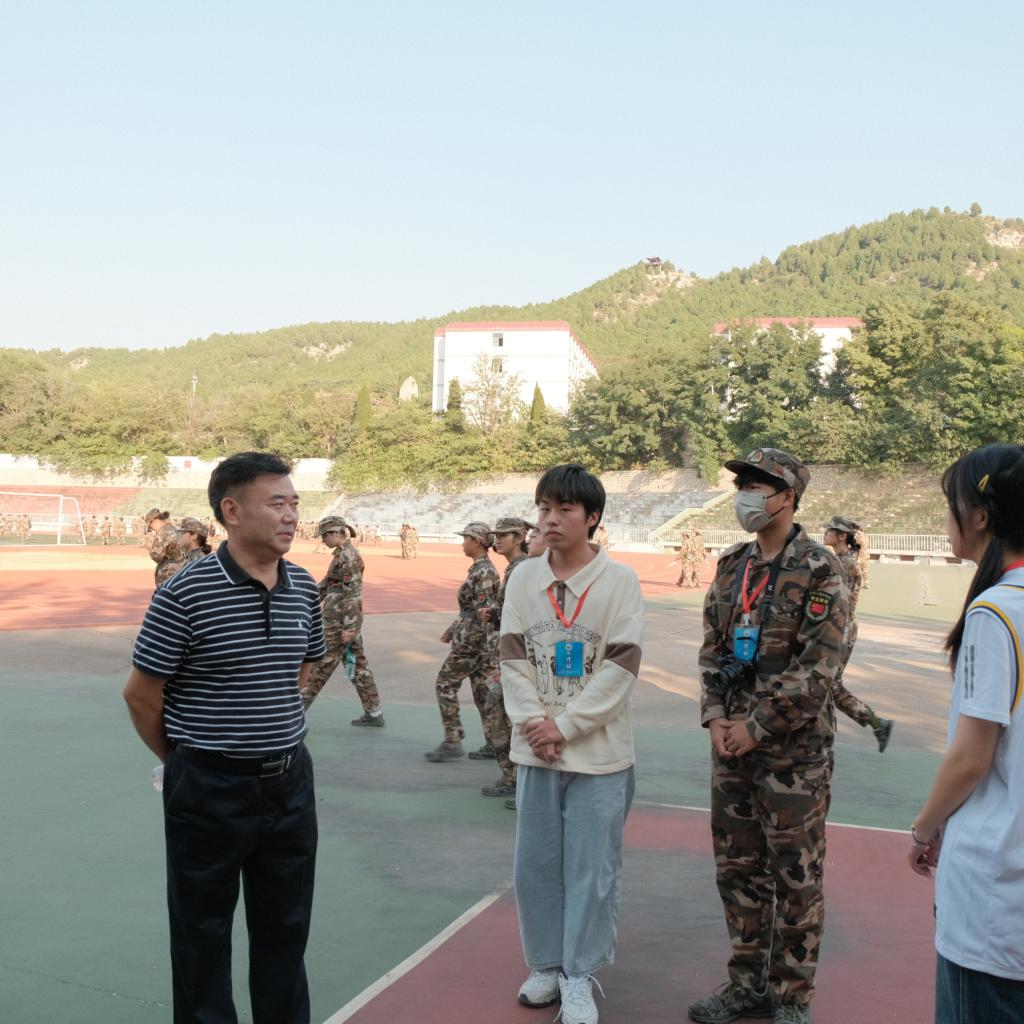 正值午后训练期间,外国语学院党委书记姜竹青走进训练场地切实关切新生训练进程,观看训练成果,并表示希望他们积极参训,锻炼身体,掌握必备的军训知识和技能,提升综合素质。老师的关怀让学子和教官们倍感温暖,也增强自己对本次军训取得圆满成功的决心和信念。