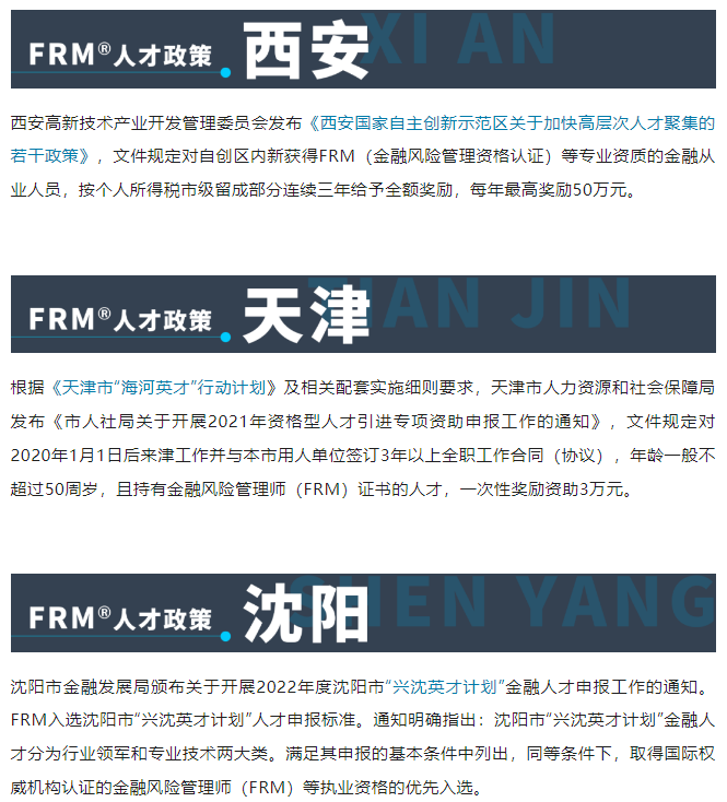 8. FRM持证人福利政策