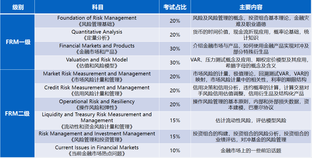 9. FRM考试科目介绍