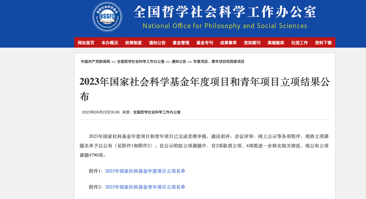 9月22日,全国哲学社会科学规划办公室公布了2023年国家社科基金年度项目和青年项目立项名单。我院共有2项课题获准立项,分别为吴风正老师主持的外国文学一般项目“联合时期苏格兰文学的民族文化建构与国家认同研究”(批准号23BWW060)和孙娟老师主持的语言学青年项目“汉语特异性句式英译过程的实证研究”(批准号23CYY044)。