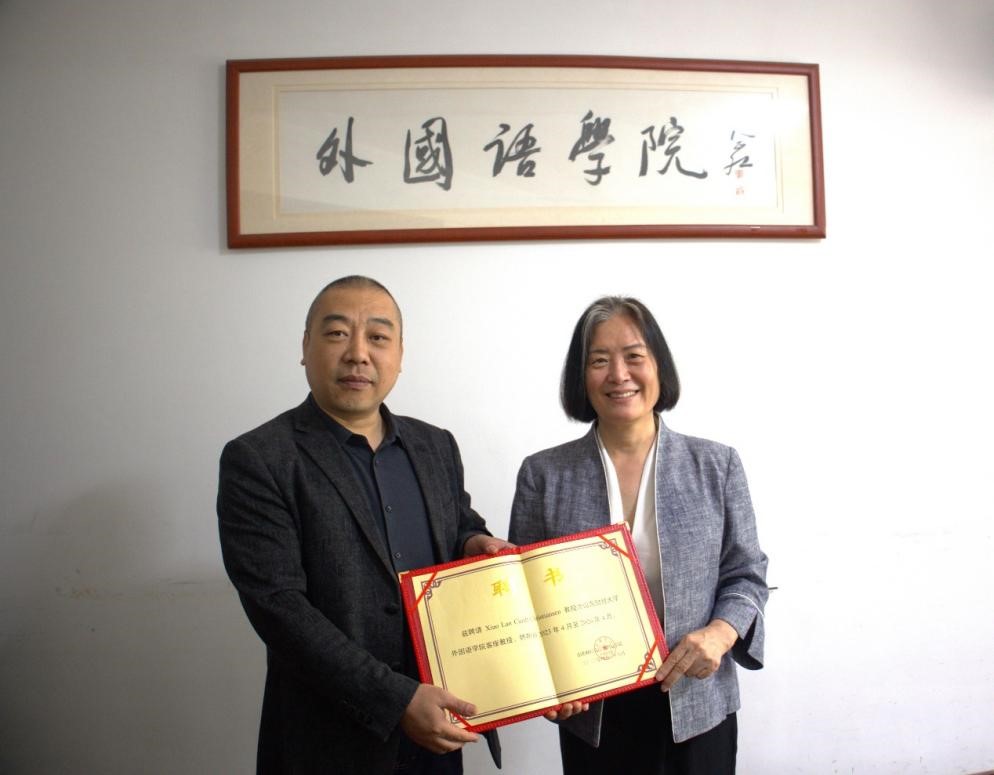 学院聘请Xiao Lan Curdt-Christiansen为我院客座教授,于秀金为Xiao Lan Curdt-Christiansen颁发聘书。