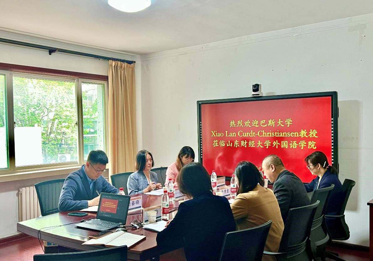 会谈阶段,杨春晓对Xiao Lan Curdt-Christiansen一行来访表示热烈欢迎,向来宾介绍了学校国际化办学方面的基本情况和近年来取得的成绩。于秀金详细介绍了外国语学院学科专业特色及国际化办学理念。Xiao Lan Curdt-Christiansen就该校建校历史和学科特色进行了详细介绍,希望双方通过不断沟通增进了解,推动两院和两校的深度合作。双方在校院际合作、学生联合培养、师资提升、合作科研及国际化课程建设等方面交换了意见,并达成诸多共识。