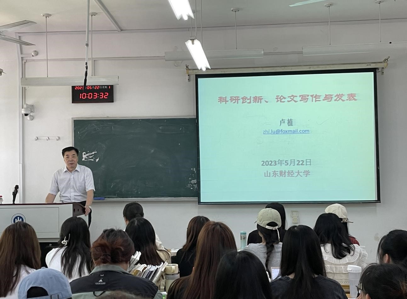 卢植教授首先从创新对于国家发展的重要性入手,强调了科学研究和论文发表都要创新思维。卢教授细致讲解了科学和学科的概念并强调了学科建设和学科意识的重要性,要不断积累学科实力,凝聚学科方向,提高学术水平,形成学科特色,创立科研品牌,成就学术地位。卢教授分享了学术研究保持国际视野的重要途径,指出要密切关注学术会议和期刊文献,熟悉科研平台,了解学术动态,把握学科趋势;融入科研学术团队,密切学术交往和互动学习。卢教授还从国际期刊论文的写作、修改和发表等方面结合文章实例讲述了论文选题、研究方法等注意事项,如写作主题要有国际性和特殊性,选题要有前沿性和标准化,方法要有通用性和科学性等。最后,我院师生积极提问,卢教授针对问题做了详细地解答。