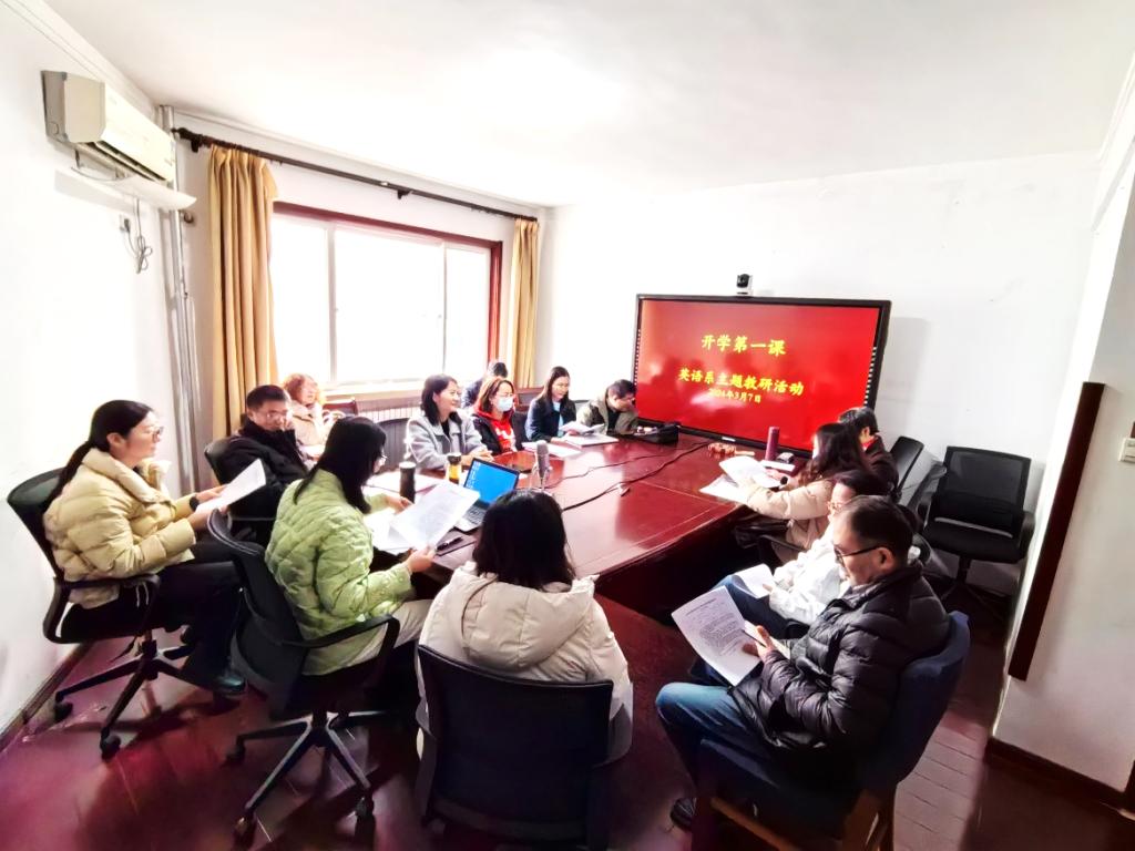 为深入贯彻党的二十大精神,大力弘扬践行教育家精神,按照山东省教育厅《关于开展弘扬践行教育家精神系列活动的通知》(鲁教师函 [2024] 7号)和学校《关于组织收看2024年春季学期教师“开学第一课”特别节目的通知》要求,3月7日下午,外国语学院英语系举办了“开学第一课”专题教研活动。