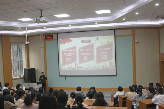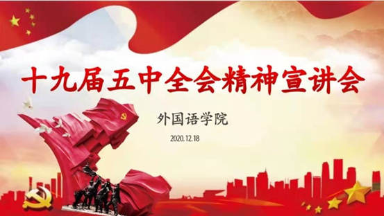 12月18日下午,山东省属高校学习贯彻党的十九届五中全会精神政策宣讲团成员、外国语学院团委书记赵雅莉在第三阶梯教室为学院学生干部、入党积极分子、学生党员及其他学生代表作了题为“全面开启建设社会主义现代化国家新征程”的宣讲。外国语学院党委副书记陈海出席并主持此次宣讲会。