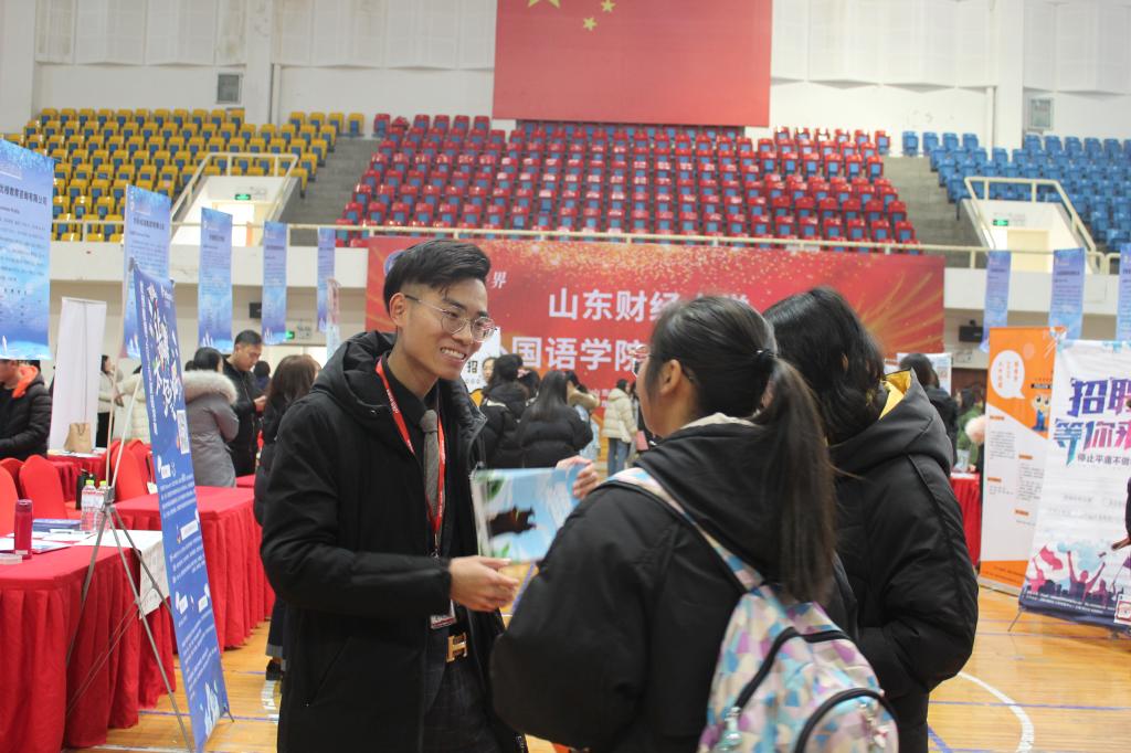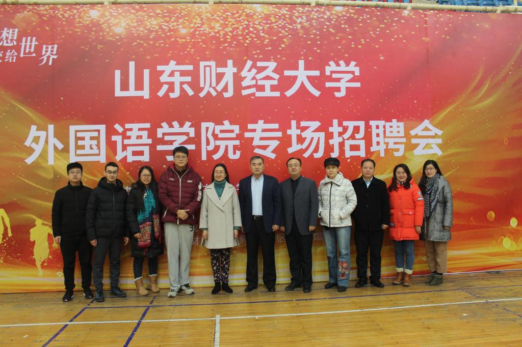 12月23日,由山东财经大学就业指导处、外国语学院共同主办的“山东财经大学外国语学院专场招聘会”在舜耕校区体育馆举办。学校就业指导处副处长杜丽娜、学校就业指导处副处长周广春、学院党委副书记陈海以及我校就业指导处、外国语学院相关负责人等到招聘会现场指导工作。