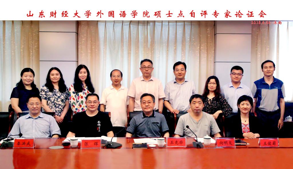 6月26日下午,外国语言文学硕士一级学位点合格评估评审会在我校舜耕校区召开,国务院第七届外国语言文学学科评议组成员北京外国语大学王克非教授、国务院第七届外国语言文学学科评议组成员对外经贸大学向明友教授、南京大学杨金才教授、南京师范大学张辉教授、山东大学王俊菊教授和曲阜师范大学秦洪武教授考察外国语言文学一级学科硕士学位授予点建设情况,并参加学位点自我评估工作会议。我校学科建设办公室马玉林主任,外国语学院李毅院长、史汝波副院长、孙崇飞副院长及部分学科带头人等参加会议。