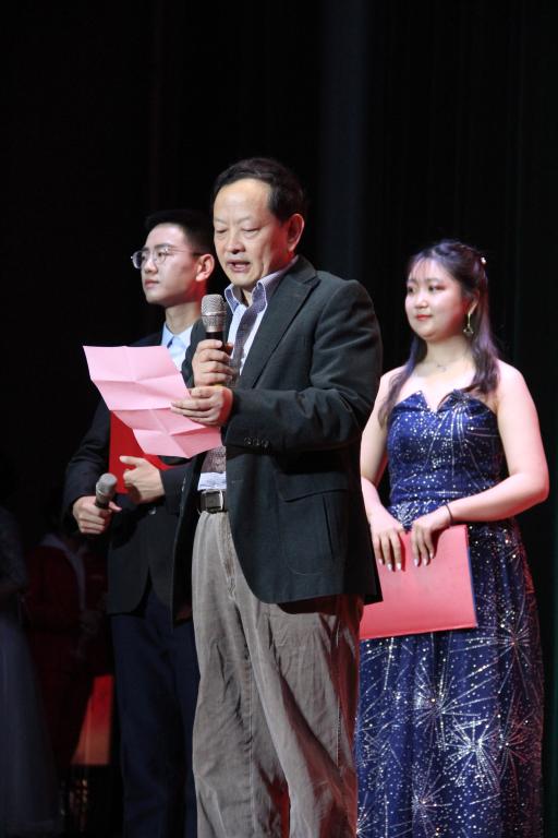 张明彬老师的配音秀准确把握了人物情绪,语言模仿惟妙惟肖,堪比影视原声,让在场观众享受到听觉上的饕餮盛宴,也感受到外语文化的魅力,彰显了外国语学院教师风采。此外,不同语种专业的外教和学生代表合作的配音朗诵《未来可期》也十分动人,英语的醇正迷人、法语的优雅浪漫、德语的端庄大气、日语的细腻温暖,都在现场相遇,亦在“未来”相聚。“未来可期”,正是青春最美好的期许。