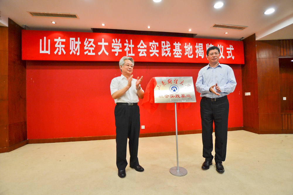 7月2日,山东财经大学社会实践基地暨外语教学实践基地揭牌仪式在诸城市举行。副校长胡文波、外国语学院院长李毅、党委书记王有志、团委书记刘奇耀和诸城市市长李峰、副市长许传平以及部分企业界代表出席了揭牌仪式。许传平代表诸城市政府与李毅签署了社会实践基地协议,胡文波和李峰共同为社会实践基地揭牌。