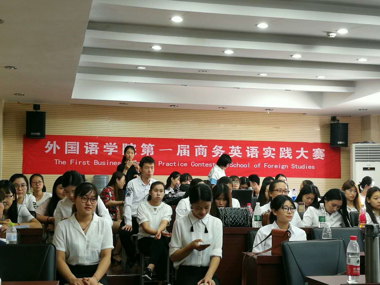 (撰稿:阮岳湘)2017年6月18日下午,外国语学院在舜耕校区成功举办第一届商务英语实践大赛。来自学院商务英语专业四个年级的100多名同学参加了比赛。本次比赛由工商管理学院刘海玲博士、我院外籍教师Keith、商务英语系副主任王艳红担任评委。 经过选手们的激烈竞争和精彩展示,2016级Echo队荣获冠军,2014级ACE队、2015级Wayfarer队获得一等奖;2015级16413队、Zeal队、Hepta Kill队获得二等奖;2013级Leap队、2015级Rookies、Vigor Six队、Glory队获得三等奖;柳汝佳、付晋冉两位同学获得最佳风采奖。