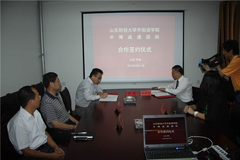 9月12日上午,外国语学院与北京中博诚通国际技术有限责任公司在舜耕校区举行ACCA/CMA/CIMA项目合作签约仪式。外国语学院院长李毅与中博诚通董事长毛金明签署合作协议,ACCA北京代表处培训事务高级经理邵楠、外国语学院处级班子成员出席签约仪式。
