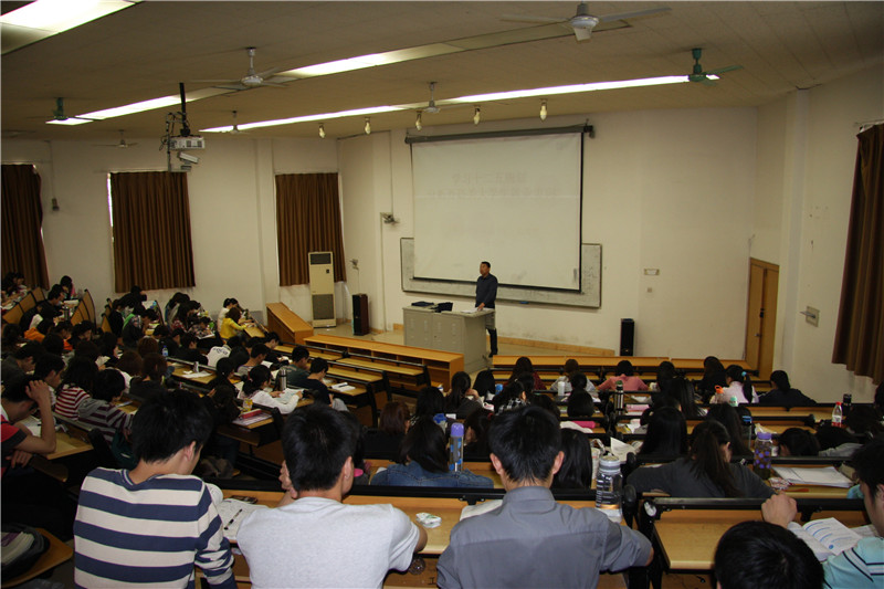 报告最初,汤书记开门见山,点出了了解政府规划对就业选择的重要性。首先他从国内外两方面分析了当下的大环境,结合菜价暴跌、GDP排名以及如今的世界货币政策等事例简述了第一、二、三产业的发展状况,指出外语专业毕业生受到冲击的事实,警示在座学生并激励大家必须巩固基础,重视口语练习。其后汤书记提出自己的期望,希望大家能具备作为外国语学院的学生应有的气质,文静与活泼兼而有之,既要内敛不至浮躁又要学会自我表现,通过日常的暗示来提升自信。之后他概述了中国自建国以来的各个五年计划,理论佐以现实,统筹分析了民心精神、投资理财和就业环境,高屋建瓴,从多方面告诫学生。报告过程中,汤书记既站在理论层面深入剖析,又贴近学生认真建议,指出如今大部分毕业生集体流向一线城市的盲目性,语言严肃而诙谐,与学生互动良好。