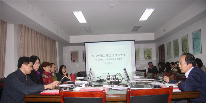 2月27日下午,外国语学院承办的第二届全国口译大赛(英语)山东财经大学初赛在我校成功举行。第二届全国口译大赛(英语)是在团中央学校部的直接指导下,由中国翻译协会主办的高水平赛事,旨在满足我国日益扩大的对外交流需求,培养高素质翻译人才,促进翻译学科建设和翻译行业的繁荣与发展。山东赛区以各大学为单位进行初赛,选拔优秀选手参加复赛。我校英语专业的22名本科生和研究生参加了比赛。外国语学院孙国瑾副教授、解玲副教授、王艳红副教授、王朋副教授、张明彬讲师担任嘉宾评委。