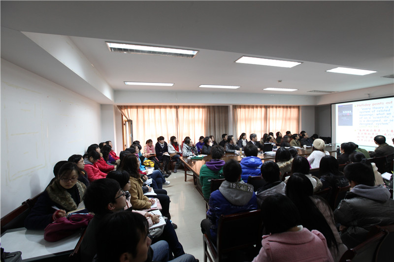 12月4日上午,应外国语学院的邀请,河南大学校长助理、博士生导师张克定教授在舜耕校区国际交流中心601室作了一场题为“科研与创新”的学术报告。张克定教授兼任中国语用学研究会副会长、中国功能语言学研究会常务理事、中国认知语言学研究会常务理事、中国英语教学研究会常务理事等学术职务。主要研究方向为功能语言学、语用学、对比语言学。主持国家级和省部级研究课题多项,在《外语教学与研究》、《外国语》等一流期刊发表多篇学术论文,出版《英汉语信息结构对比研究》等多部重要著作,并多次获得河南省社科优秀成果奖一等奖。