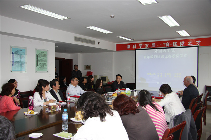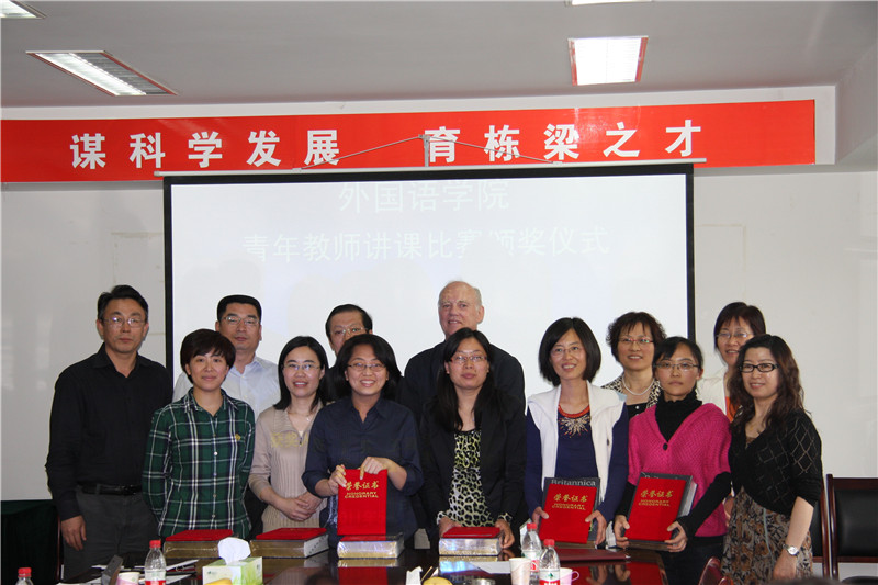 (通讯员 周洁)5月4日下午,外国语学院举行青年教师讲课比赛活动总结及颁奖仪式,人事处处长高立明、教务处副处长张涛教授、原美国康州教育厅葛丹先生及外国语学院领导出席活动并为获奖教师颁奖。此次活动还得到了上海外语教育出版社的支持并提供奖品。
