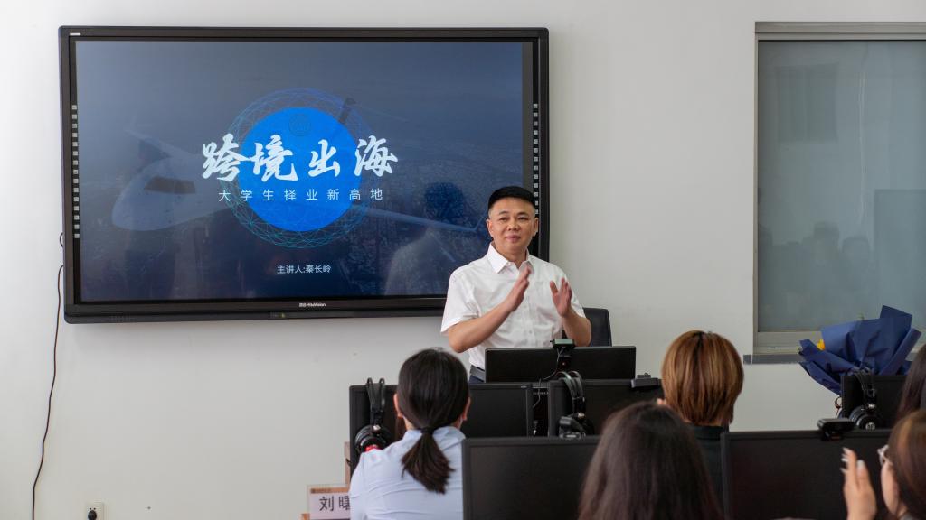 5月10日下午,山东省跨境电商协会会长、秦工国际集团董事长秦长岭先生莅临我院“国际商务与语言服务”讲坛第一讲,做了题为“跨境出海,大学生择业新高地”的主题报告。院长于秀金以及学院各专业的老师和学生聆听了本次报告。报告由院长助理张斐瑞主持。