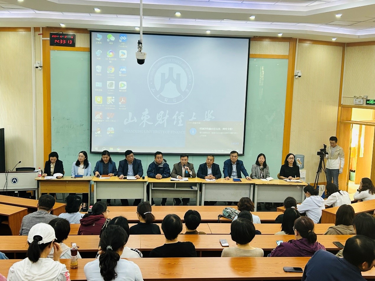 10月12日下午,外国语学院在舜耕校区第三阶梯教室,召开了全体教职工大会,学院党政领导班子成员及全体教职工参加了会议。会议由学院党委书记姜竹青主持。