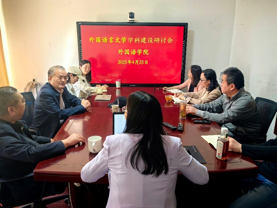 25日上午,周长银教授与学院领导班子及骨干教师举行外国语言文学学科建设研讨会。会议聚焦科研规划、团队建设与学科特色凝练,周教授结合国家社科基金项目评审经验及北京第二外国语学院学科发展案例,提出多项建议,鼓励学院以“外语+财经”为特色,探索跨学科研究,形成差异化优势,优化项目申报策略、推动学术成果转化等。