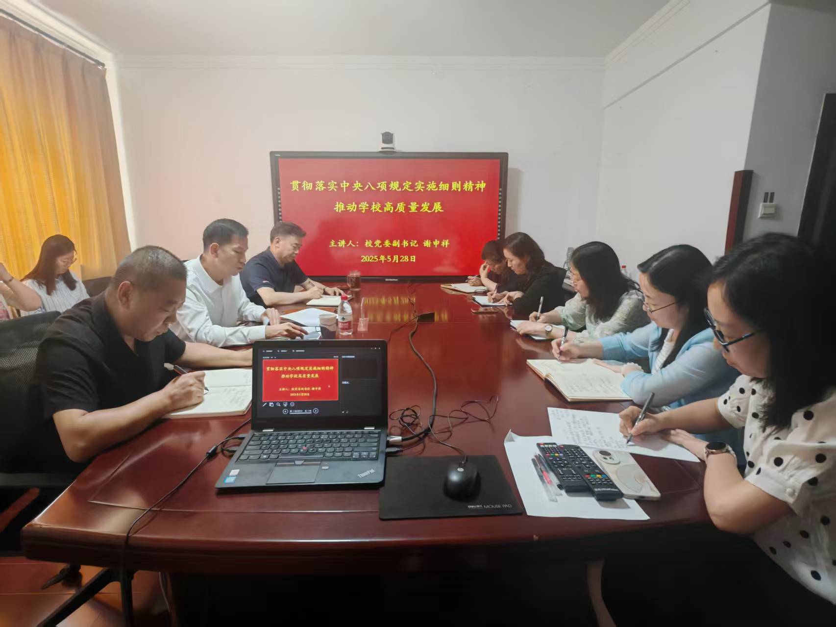 谢申祥以“贯彻落实中央八项规定及其实施细则精神,推动学校高质量发展”为题,从中央八项规定制定的背景、中央八项规定的内容和中央八项规定实施细则核心要义等方面进行深入解读,同时,结合学校工作实际,深入阐述了中央八项规定精神的丰富内涵。