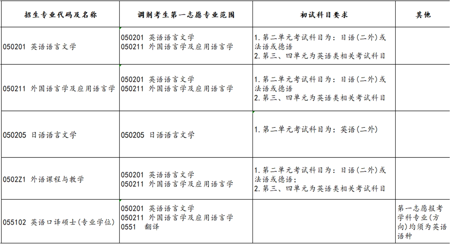 外国语学院2025年硕士研究生招生有部分专业接收调剂考生。具体信息以中国研究生招生信息网“全国硕士研究生招生调剂服务系统”公布为准。调剂考生可在我校开启调剂系统后,登录“全国硕士研究生招生调剂服务系统(http://yz.chsi.com.cn)”查询有关信息并填报志愿。