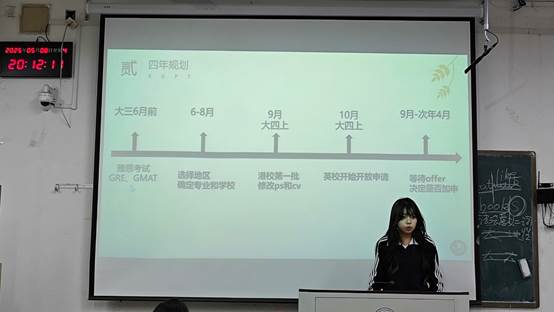 李欣霏分享其大二起规划留学路径的经历,通过分阶段攻克语言考试、积累三段传媒领域实习及雅思高分,以“冲稳保”策略完成英港联申,斩获5所名校录取。她提出三条建议:尽早明确方向,实习需与目标专业强相关,语言成绩是竞争力的关键砝码。